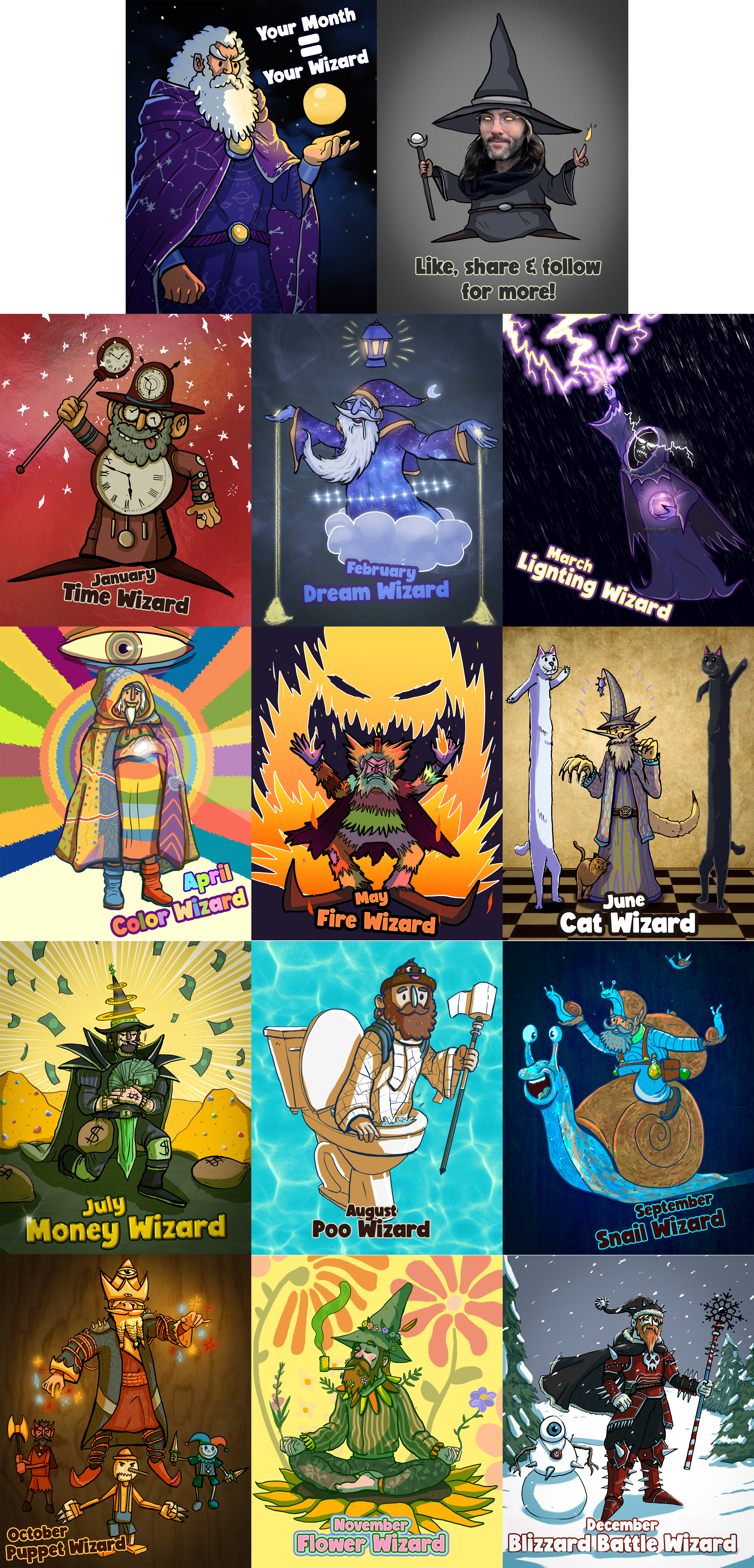 Social Media Carousel post for wizard birth month assignments